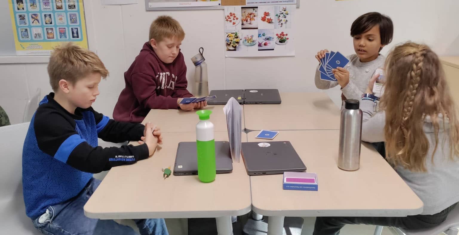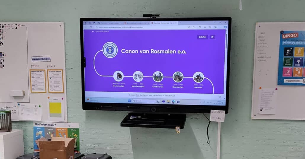 Deze Unescoschool werkt met het onderwijspakket ‘Go’ en dat gaat uit van de tijdbalk met 10 tijdvakken om de kinderen inzicht in de geschiedenis te geven. Het kwartet gebruiken ze om de vaderlandse geschiedenis te begrijpen door de geschiedenis van Rosmalen te bestuderen. Niet stapelen dus, maar vervangen van leerstof!