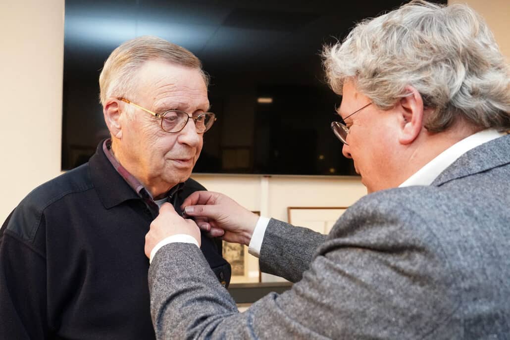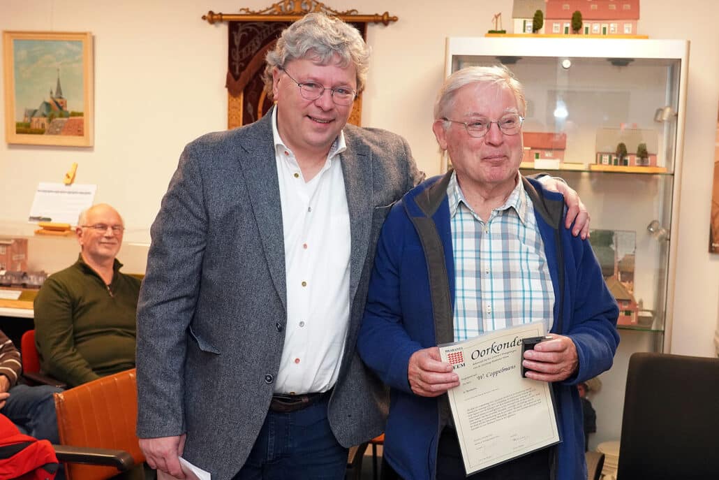 Voor deze gebeurtenis was Jan van Kempen, bestuurslid van Brabants Heem, naar onze Heemkamer afgereisd om persoonlijk deze onderscheidingen uit te reiken. Hij roemde beide vanwege hun jarenlange bijdrage aan onze Heemkundekring.