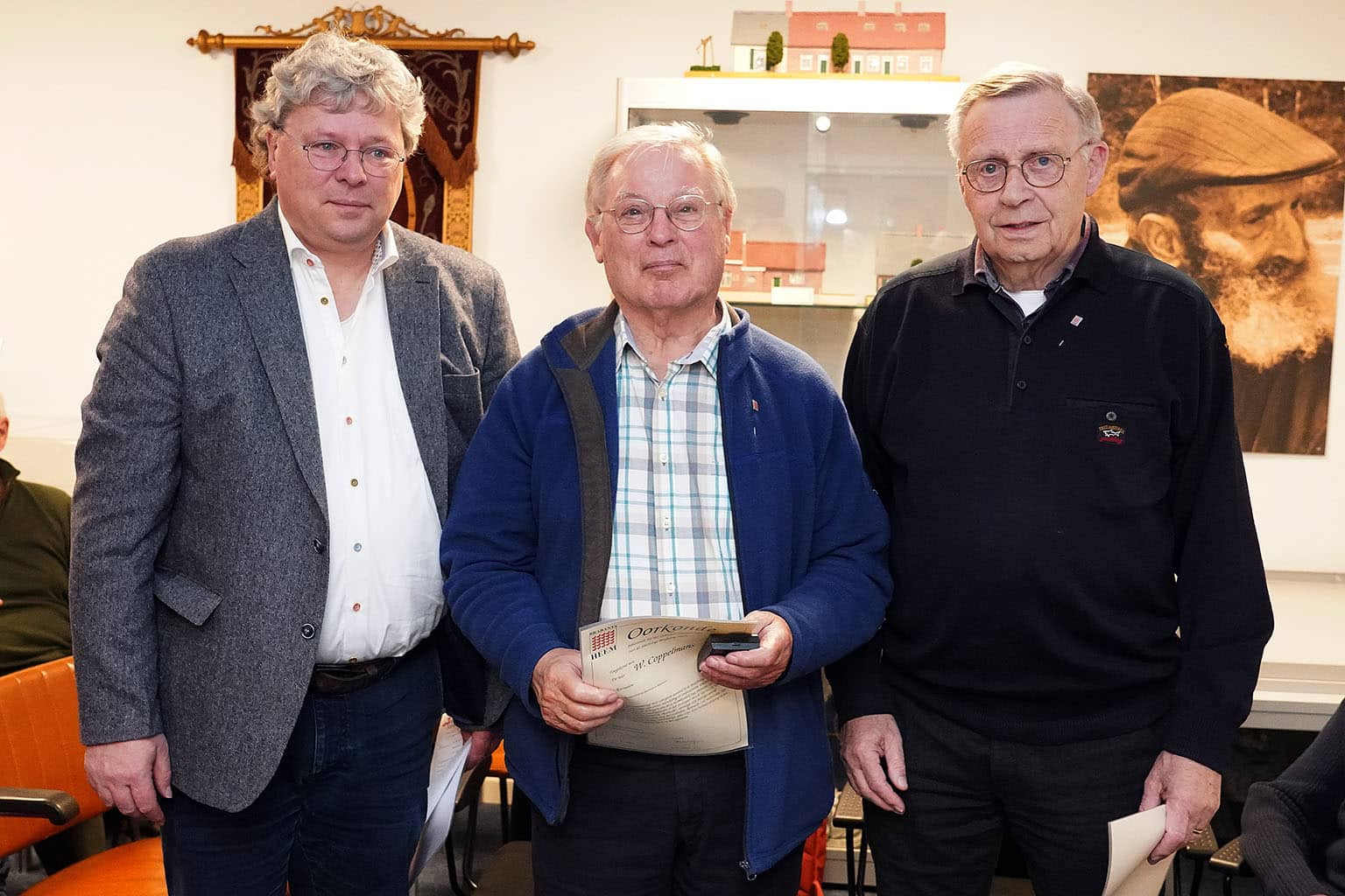 Voor deze gebeurtenis was Jan van Kempen, bestuurslid van Brabants Heem, naar onze Heemkamer afgereisd om persoonlijk deze onderscheidingen uit te reiken. Hij roemde beide vanwege hun jarenlange bijdrage aan onze Heemkundekring.